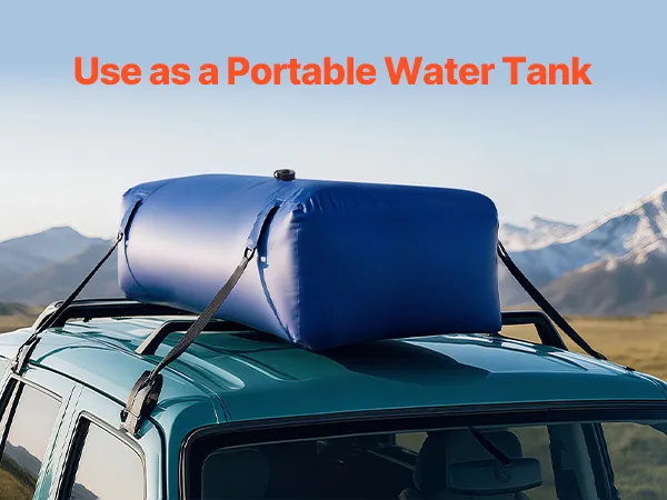 Przenośny i zajmujący mało miejsca: Miękki worek na wodę jest wyposażony w cztery solidne uchwyty i można go przymocować paskami do skrzyni ładunkowej pickupa, SUV-a lub dachu, aby zapobiec przesuwaniu się podczas transportu. Miękki materiał PVC składa się kompaktowo po opróżnieniu, co ułatwia przechowywanie i transport w porównaniu z dużymi zbiornikami.