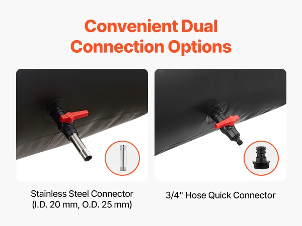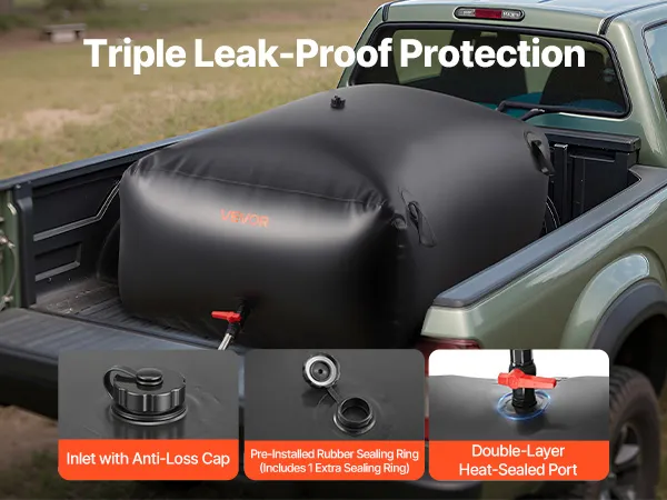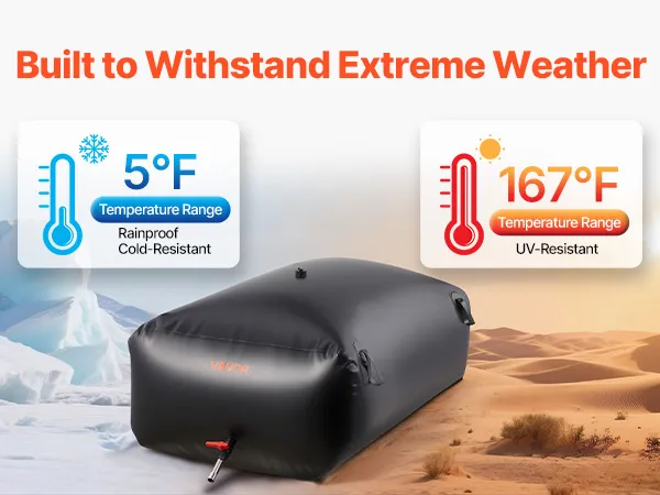 Dwuwarstwowy PVC 1000D: Wzmocniony dwuwarstwowy PVC 1000D, dwustronne powłoki PVC oraz rdzeń z siatki zapewniają odporność na rozdarcia i ścieranie. Zbiornik na wodę został zaprojektowany z myślą o wysokich obciążeniach rozciągających i charakteryzuje się szerokim zakresem tolerancji temperatur od -15°C do 75°C. Dzięki temu jest niezawodny zarówno w niskich, jak i wysokich temperaturach, a także wydłuża jego żywotność.