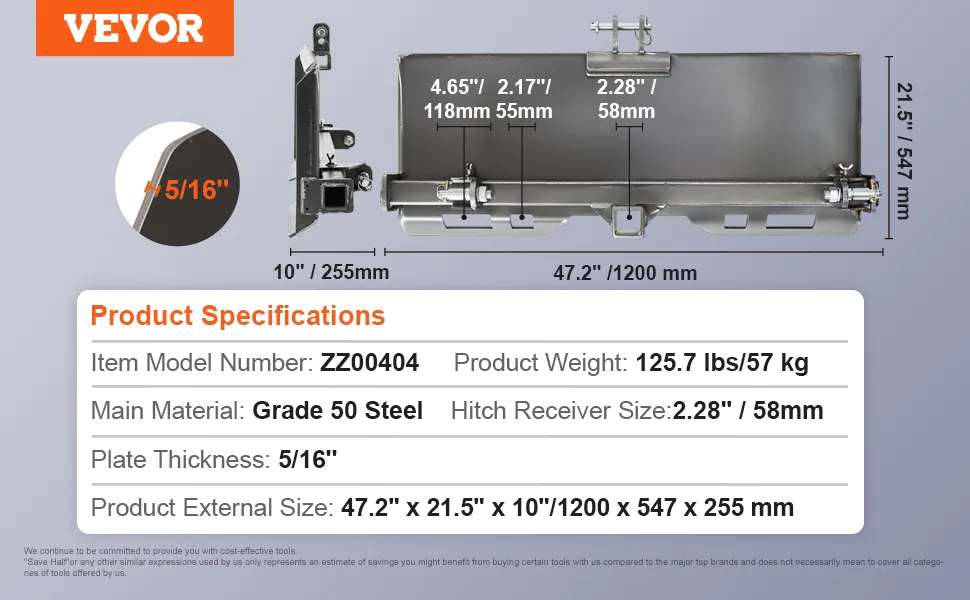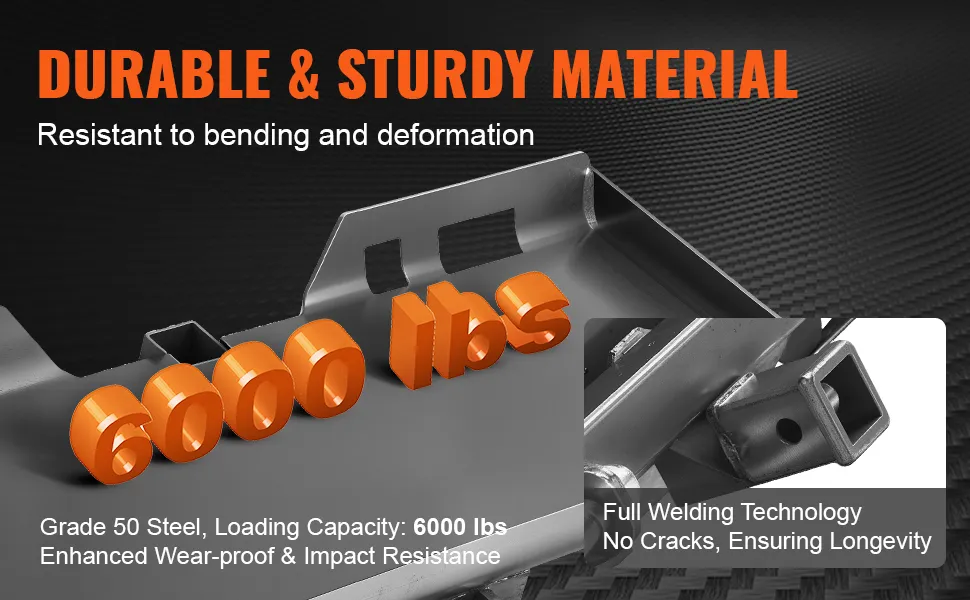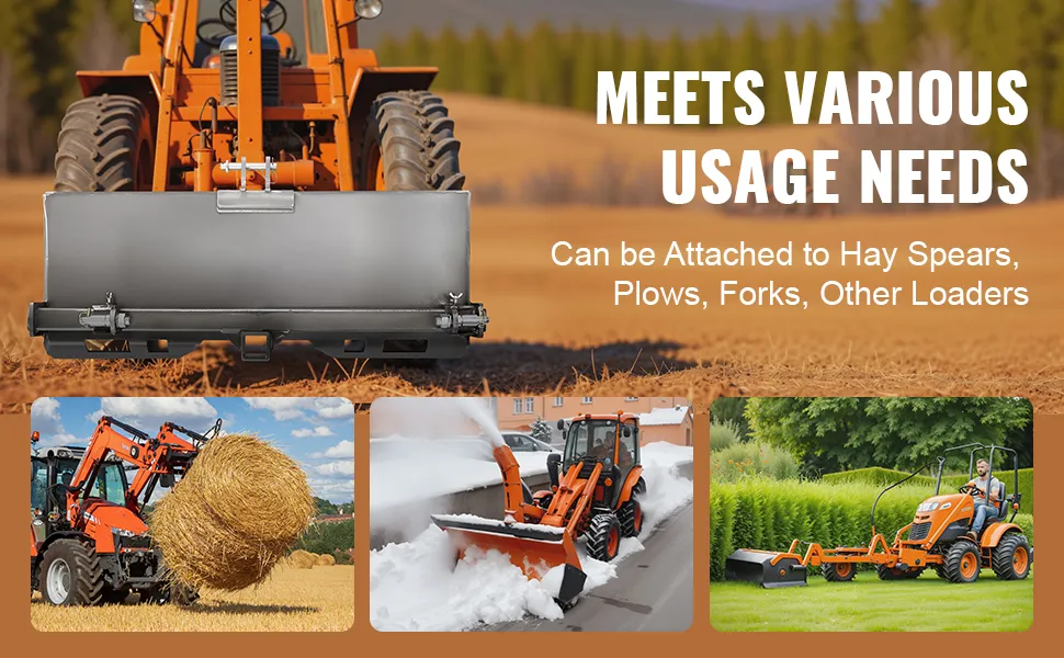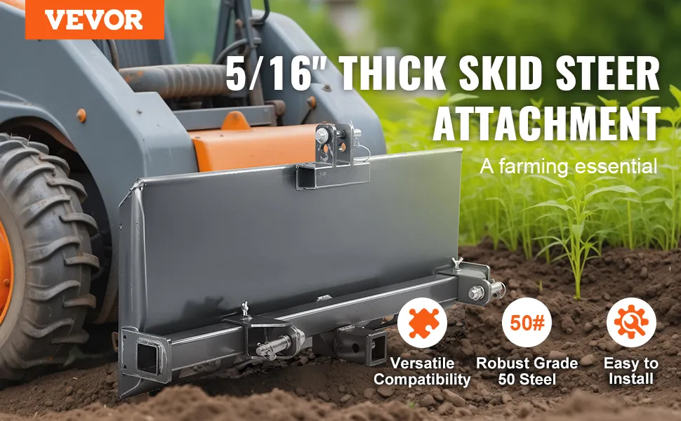 Uniwersalna 3-punktowa płyta do ładowarek gąsienicowych VEVOR to wszechstronne i trwałe rozwiązanie. Wykonana jest ze stali klasy 50. Zapewnia to długotrwałą wydajność. Płyta ma wymiary 47,2 x 21,5 x 10 cali i waży 125,7 funta. Solidna konstrukcja płyty umożliwia jej wykorzystanie w różnych projektach. Nasza płyta idealnie pasuje do ciągników i ładowarek gąsienicowych. Można jej również używać jako podstawy fundamentowej do różnych osprzętów. Jego solidna konstrukcja zapewnia niezawodny punkt wyjścia do szybkich projektów odłączanych w trudnych warunkach. Dzięki kompatybilności z wieloma markami, ta płyta oferuje elastyczność. Możesz więc dodać płytę do każdego gospodarstwa lub placu budowy.