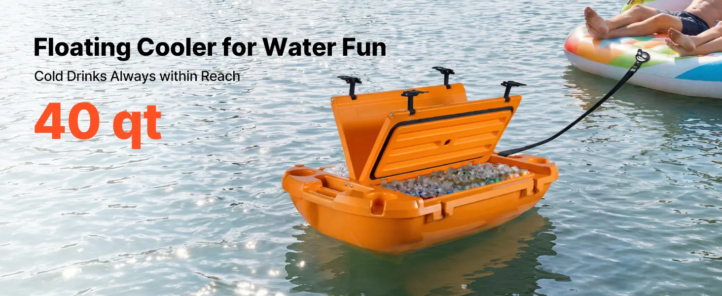 VEVOR Pływająca chłodziarka amfibijna, 37,9 l, pływająca chłodziarka na napoje z suchą komorą i linką do wody i lądu, stabilny pojemnik chłodzący z LLDPE do basenu, rzeki, jeziora, plaży, morza, na imprezę, pomarańczowy