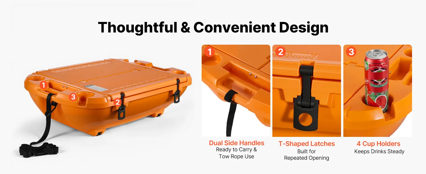 Długotrwałe chłodzenie dzięki izolacji piankowej: Gruba, jednoczęściowa, twarda skorupa z izolacją piankową zapewnia przyjemny chłód na jeziorze i utrzymuje niską temperaturę nawet podczas jednodniowych wycieczek. Zaprojektowany z myślą o zachlapaniu, słońcu i aktywności na świeżym powietrzu.