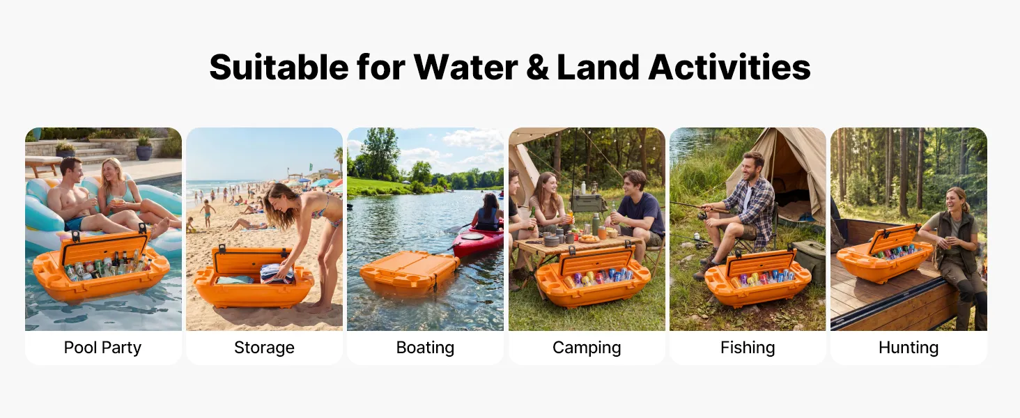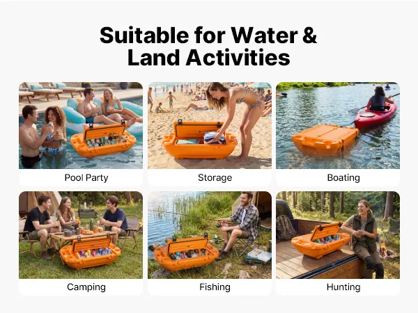 To coś więcej niż tylko pływająca lodówka turystyczna do pływania wiosłem lub łodzią – to również wszechstronna, przenośna lodówka turystyczna. Używaj jej do chłodzenia napojów podczas biwakowania, jako stabilnej podstawy i bagażnika na plaży, a także do przechowywania przynęty i złowionych ryb podczas wędkowania.