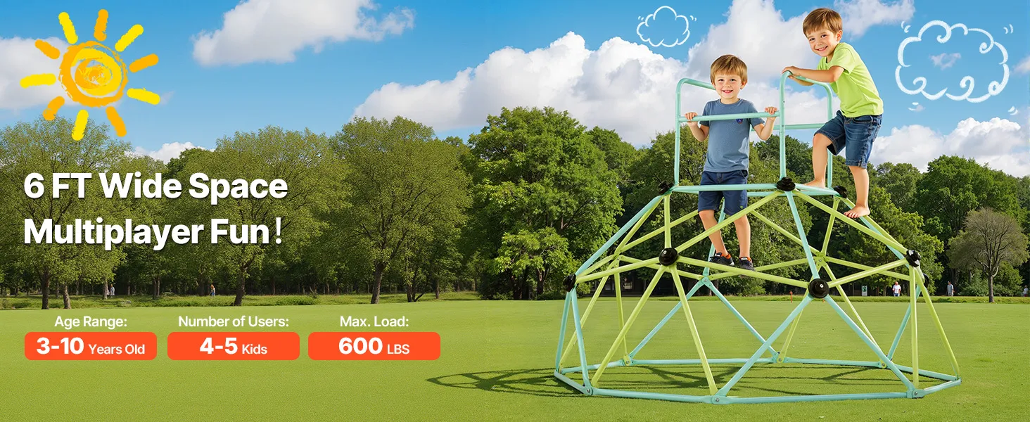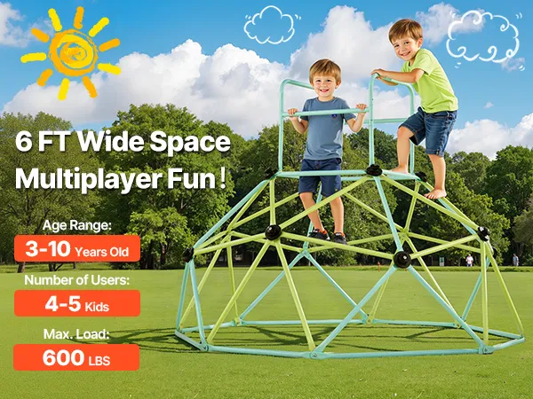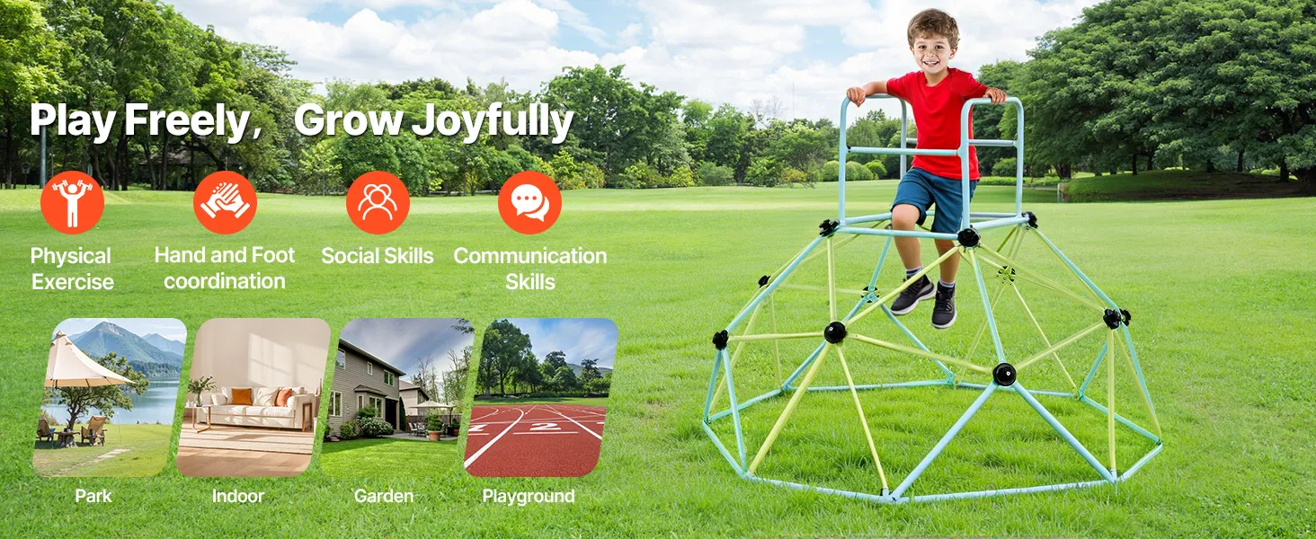 Radosna zabawa i zdrowy rozwój: Ta kopuła wspinaczkowa o szerokości 183 cm jest przeznaczona dla dzieci w wieku od trzech do dziesięciu lat. Utrzymuje ciężar do 270 kg i pomieści jednocześnie od czterech do pięciu dzieci. To doskonały sposób na zapewnienie dzieciom aktywności w domu i na świeżym powietrzu, wzmocnienie ich ciała i poznawanie nowych przyjaciół poprzez zabawę.