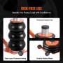 Regulowany kąt nachylenia uchwytu: Uchwyt można regulować pod trzema kątami, a w połączeniu z wytrzymałymi, nylonowymi kółkami pozwala na wsuwanie podnośnika pod samochód bez konieczności schylania się. Pożegnaj ból pleców. Niezawodne koła z łatwością wytrzymują duże obciążenia i nie pękają.