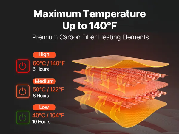 Ogrzewanie wielostrefowe: Ta ogrzewana kurtka posiada elementy z włókna węglowego w 5 strefach rdzenia (ramiona, brzuch, plecy) i zapewnia szybkie ciepło dzięki 3 regulowanym ustawieniom ogrzewania (niskie/średnie/wysokie), 40–60°C, co jest idealne na chłodne zimowe dni.
