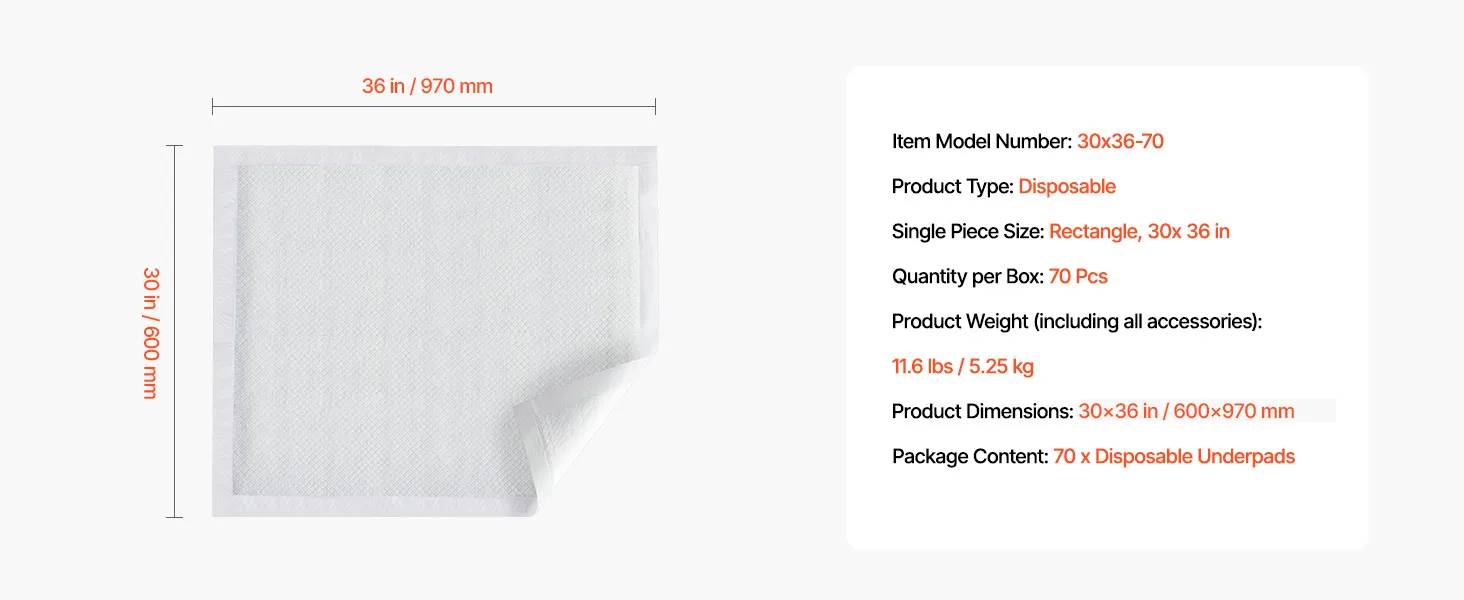 Zachowaj suchość i wygodę dzięki naszym jednorazowym podpaskom o wymiarach 762 x 914,5 mm. Dzięki 5-warstwowej strukturze ochronnej te podkłady są niezwykle chłonne i szybko wchłaniają płyny. Dzięki temu łóżka, sofy i materace pozostają suche. Idealne dla niemowląt, osób starszych, dorosłych i zwierząt domowych – po prostu użyj i wyrzuć, aby łatwo wyczyścić.
