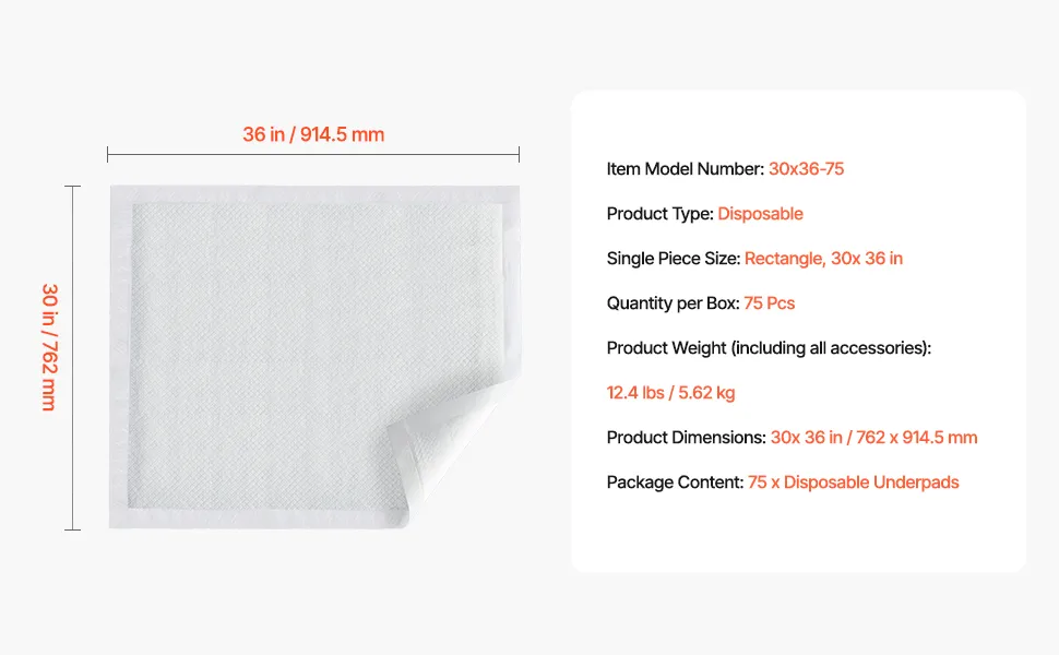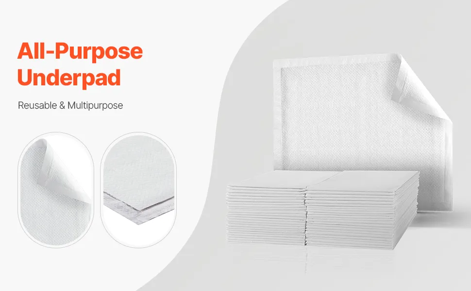Zachowaj suchość i wygodę dzięki naszym jednorazowym podpaskom o wymiarach 762 x 914,5 mm. Dzięki 5-warstwowej strukturze ochronnej te podkłady są niezwykle chłonne i szybko wchłaniają płyny. Dzięki temu łóżka, sofy i materace pozostają suche. Idealne dla niemowląt, osób starszych, dorosłych i zwierząt domowych – po prostu użyj i wyrzuć, aby łatwo wyczyścić.