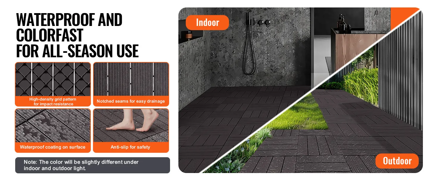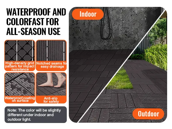 Trwała i łatwa w utrzymaniu: Wykonana z tworzywa sztucznego PP o wysokiej gęstości podłoga balkonowa nadaje się na każdą porę roku, jest odporna na rozciąganie, łatwa do czyszczenia i ma wygląd przypominający drewno, dzięki czemu pięknie komponuje się z otoczeniem — idealna dla użytkowników dbających o środowisko.