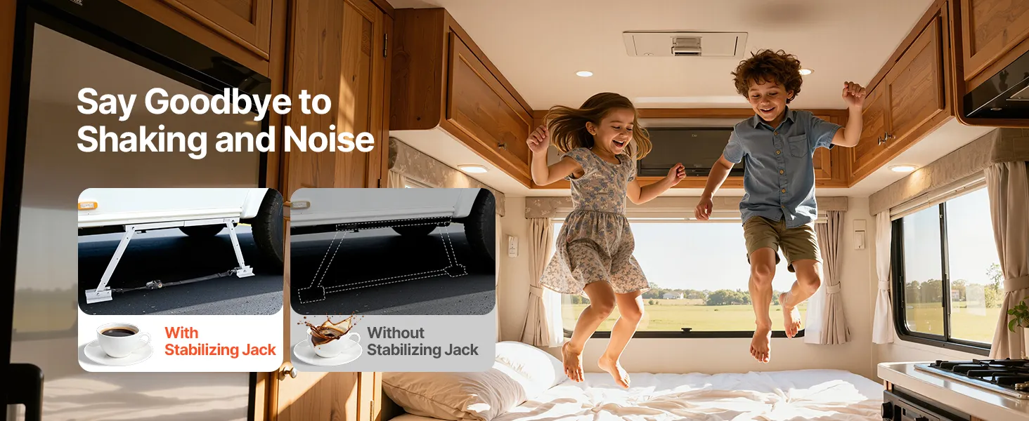 Lepsza stabilność: Koniec z trzeszczeniem i hałasem. Drążek stabilizujący do kamperów skutecznie redukuje wibracje i zapewnia stabilność nawet na nierównym terenie lub w wietrzne dni. Ciesz się ciszą i stabilnością w środku.