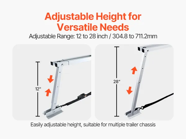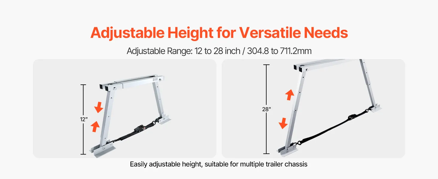 Elastyczna regulacja wysokości: Obsługuje regulację wysokości od 12 do 28 cali (304,8 do 711,2 mm) z precyzyjnym rozmieszczeniem otworów dla łatwego montażu. Ten stabilizator do kamperów zapewnia optymalne dopasowanie do podwozi o różnej wysokości oraz bezpieczne i niezawodne mocowanie.