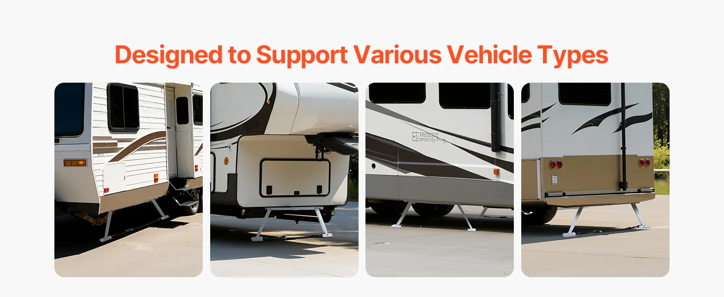 Wszechstronna kompatybilność: Ten stabilizator do kampera jest kompatybilny z szeroką gamą przyczep i pasuje do przyczep kempingowych, naczep, kamperów i składanych przyczep kempingowych. Dostosowuje się do różnych rozmiarów podwozi, skutecznie minimalizując przechyły i poprawiając stabilność – dla bezpieczniejszej jazdy.