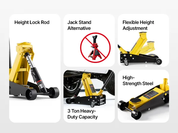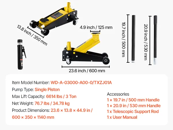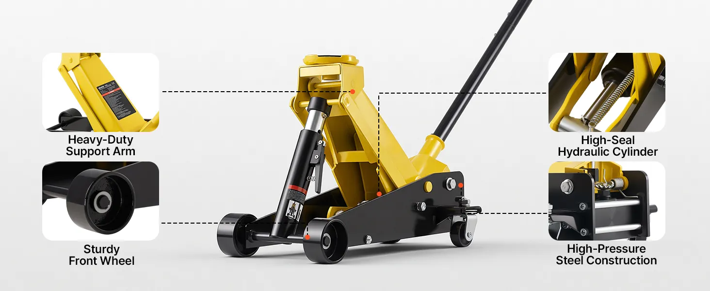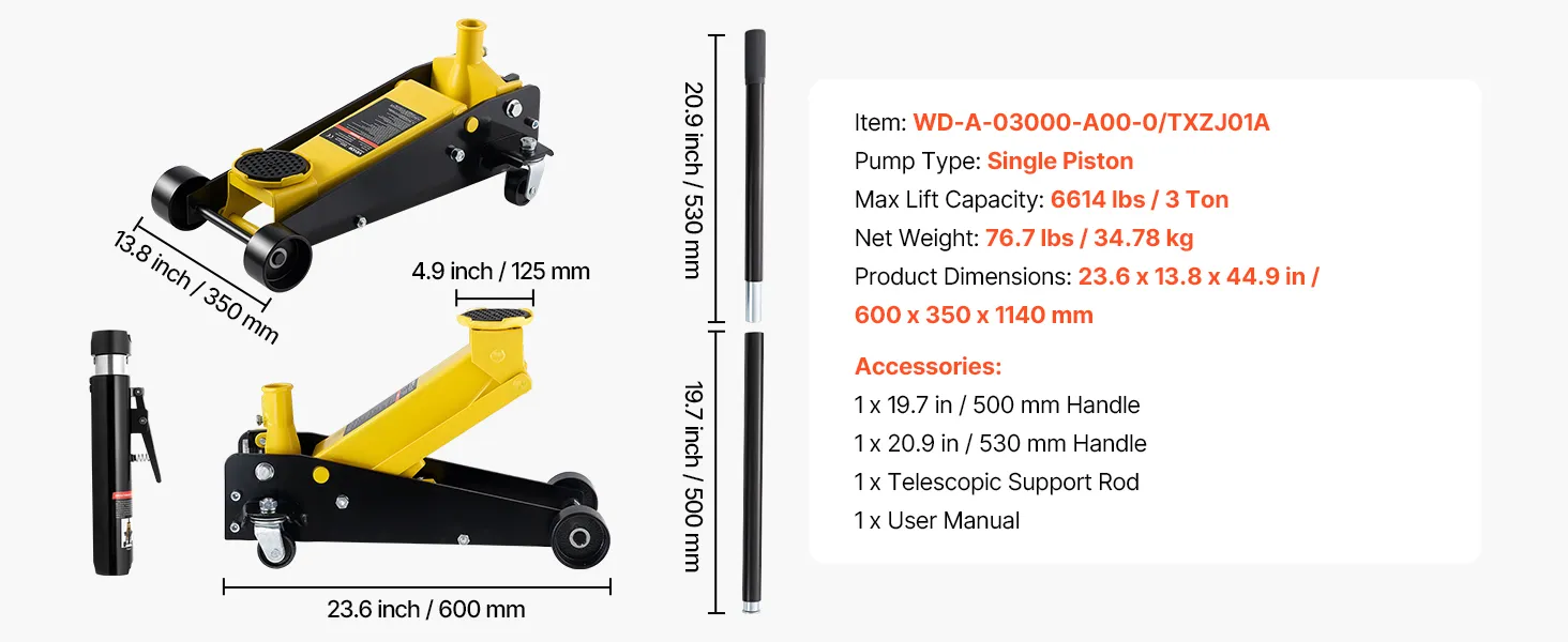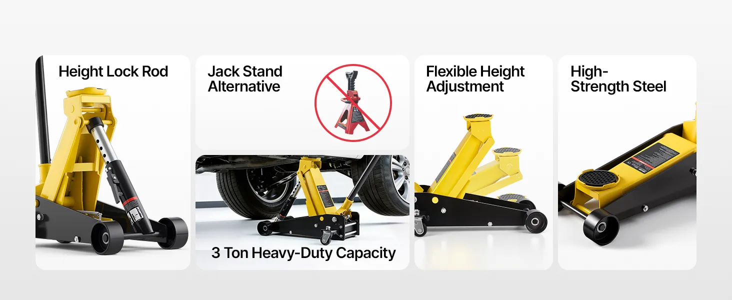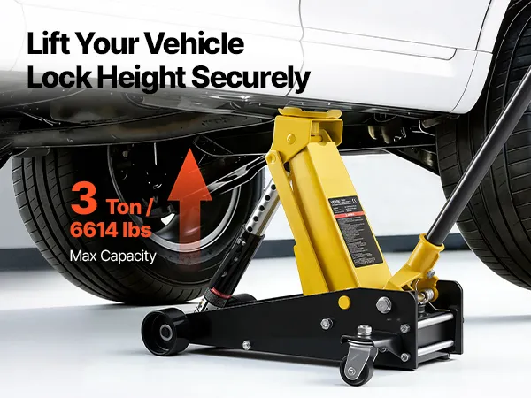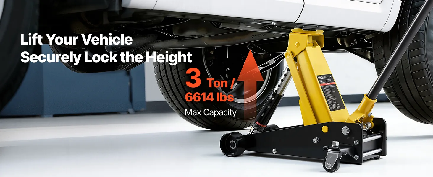 • Maksymalny udźwig: Nasz podnośnik hydrauliczny podnosi do 3 ton (6614 funtów), dzięki czemu idealnie nadaje się do samochodów sportowych, sedanów, SUV-ów i pickupów. Doskonale nadaje się do wymiany opon, serwisu hamulców, napraw układów wydechowych, konserwacji zawieszenia i innych prac podwoziowych.