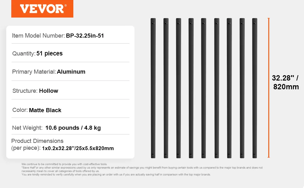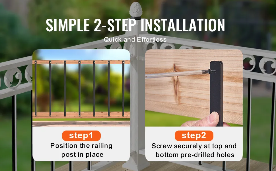 Aluminiowe trzpienie balustradowe VEVOR są bardzo łatwe w montażu. Są wyposażone we wszystkie niezbędne śruby. Proces instalacji jest prosty. Możesz zainstalować je samodzielnie bez pomocy profesjonalistów. Oszczędza to pieniądze na kosztach robocizny. Te trzpienie są lekkie, dzięki czemu łatwiej je ustawić. Możesz wykonać zadanie w krótkim czasie. Proces jest prosty i bezproblemowy. Nie są wymagane żadne specjalne narzędzia ani umiejętności. Wystarczy postępować zgodnie z dostarczonymi instrukcjami. Dzięki temu jest to łatwy projekt do samodzielnego wykonania. Łatwość instalacji to duży plus; wydajność tych trzpieni wiąże się z minimalnym wysiłkiem. Oszczędza to czas na ich samodzielny montaż.