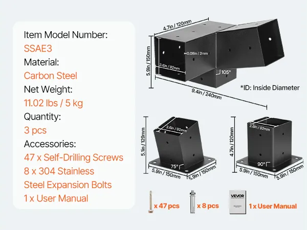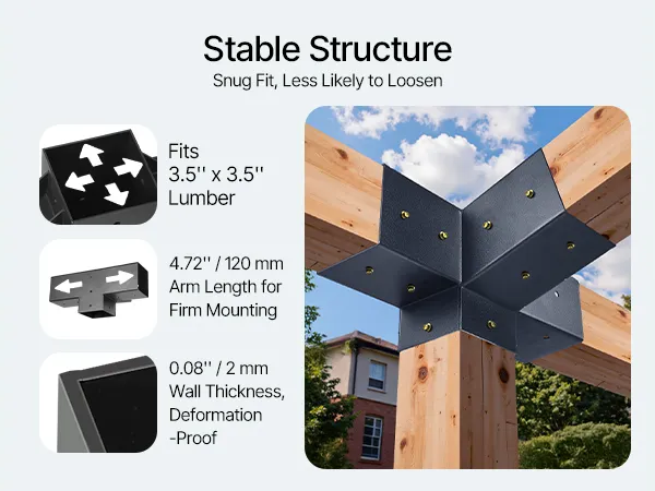 A4: Wspornik 4 x 4 cale (wymiary wewnętrzne: 3,62 x 3,62 cala) pasuje do drewna o wymiarach rzeczywistych 3,5 x 3,5 cala. Wspornik 6 x 6 cali (wymiary wewnętrzne: 5,59 x 5,59 cala) pasuje do drewna o wymiarach rzeczywistych 5,5 x 5,5 cala.