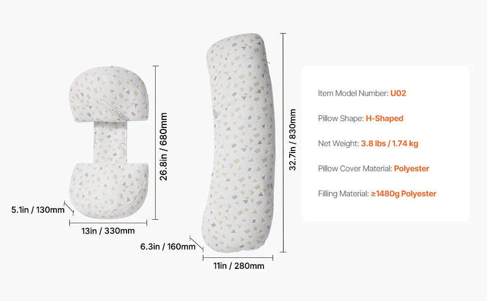 Łatwe do czyszczenia: Zdejmowany i nadający się do prania w pralce pokrowiec jest łatwy do czyszczenia i sprawia, że poduszka ciążowa wygląda jak nowa. Podwójny zamek błyskawiczny pozwala na łatwe zdejmowanie, zapewnia wygodę i długotrwały komfort nawet po wielokrotnym praniu.