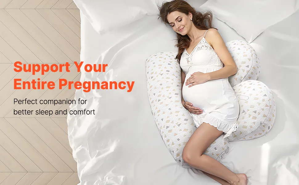 Niezbędnik w czasie ciąży: Nasza poduszka ciążowa to rozwiązanie pozwalające złagodzić powszechne dolegliwości ciążowe, takie jak powiększanie się brzucha, ból pleców i obrzęk nóg. Można go również umieścić za plecami lub pod nogami, co zapewni przyszłym mamom wyjątkowy komfort, ulgę w bólu i spokojny powrót do zdrowia.