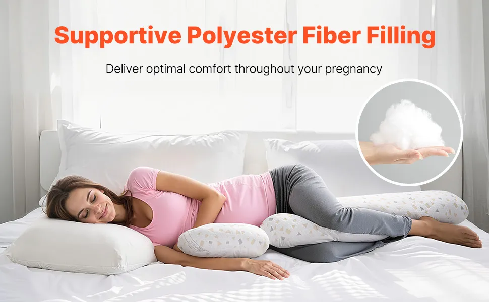 Nasza poduszka ciążowa wypełniona jest wysokiej jakości włóknem poliestrowym i zapewnia idealną równowagę między wsparciem i komfortem dla Twojego ciała. Ma on na celu łagodzenie stresu i wspomaganie relaksu, dzięki czemu możesz się odprężyć i cieszyć się chwilą.