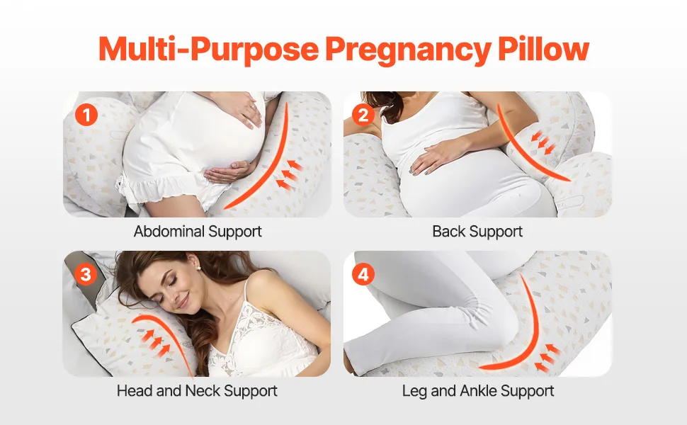 Poduszka ciążowa VEVOR, regulowana poduszka do karmienia dla kobiet w ciąży, poduszka do spania na boku ze zdejmowanym i nadającym się do prania pokrowcem, podtrzymująca plecy, brzuch i biodra, lekka i przenośna