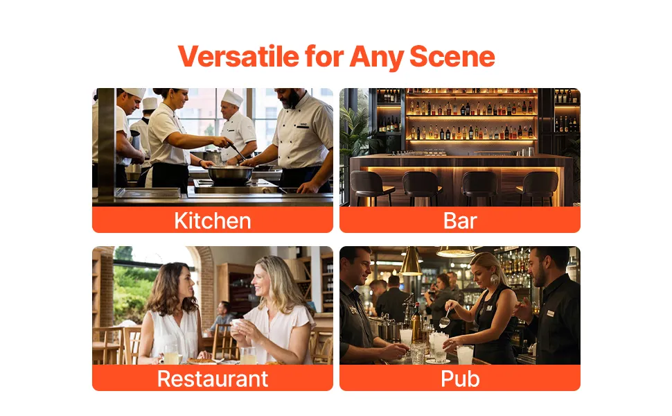 Duża pojemność: Nasz komercyjny pojemnik na lód o wymiarach wewnętrznych 22 x 15,3 x 11,2 cala (555 x 390 x 285 mm) oferuje dużą pojemność 61,6 l, co czyni go idealnym rozwiązaniem do przechowywania dużych ilości lodu lub chłodzenia różnych napojów. Spełnia wszystkie Twoje potrzeby chłodzenia na każdą okazję