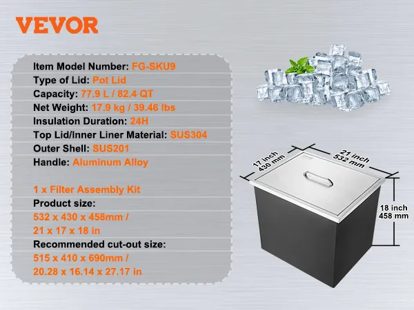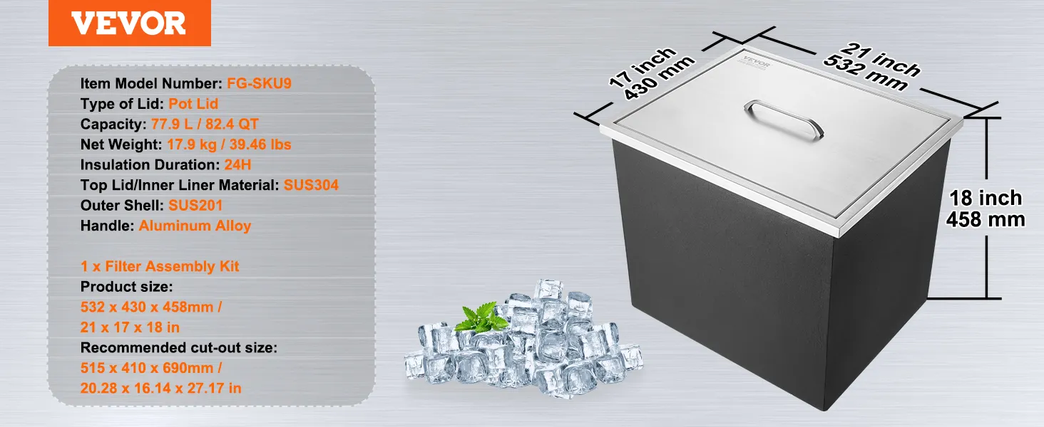 Skrzynka na lód Drop In VEVOR została stworzona, aby idealnie pasować do Twojej kuchni lub baru na świeżym powietrzu. Jej konstrukcja ze stali nierdzewnej zapewnia trwałość i elegancki wygląd. Dzięki pojemności 40 qt może pomieścić dużo lodu i napojów. Dzięki temu idealnie nadaje się na każde spotkanie lub wydarzenie. Dołączona rura spustowa i korek ułatwiają obsługę i czyszczenie. Niezależnie od tego, czy organizujesz imprezę Bollywood, czy imprezę przy basenie, ta skrzynia na lód utrzymuje Twoje napoje w chłodzie i zapewnia do nich dostęp. Jej jakość komercyjna zapewnia, że wytrzyma częste użytkowanie. Dodaj profesjonalizmu do swojej przestrzeni na zewnątrz dzięki tej niezawodnej skrzyni na lód.