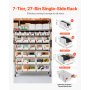 VEVOR wolnostojący regał, regał magazynowy z 7 poziomami i 26 pojemnikami do układania w stosy, regał na książki, półka kuchenna na kółkach, mobilny regał do garażu, magazynu, biura, restauracji, klasy, kuchni, 355x1110x1480 mm