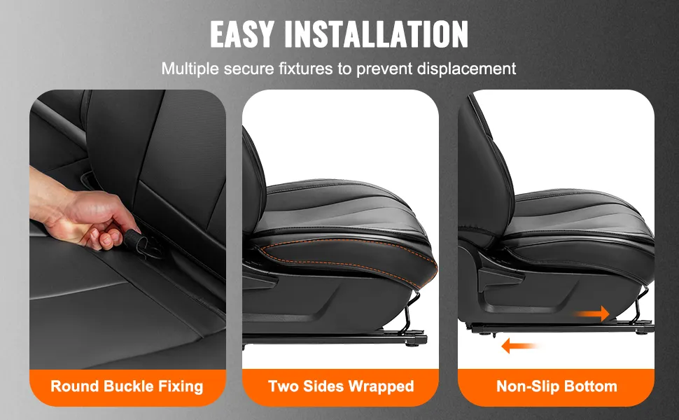 Uniwersalne pokrowce na siedzenia samochodowe VEVOR idealnie pasują. Wyglądają, jakby zostały stworzone dla Twojego samochodu. Montaż jest prosty i zajmuje tylko kilka minut, aby mocno naciągnąć pokrowiec pod siedzenie, aby uzyskać ciasne dopasowanie. Pokrowce te są zaprojektowane tak, aby pasowały do większości samochodów, SUV-ów i ciężarówek. Uniwersalne dopasowanie zapewnia elegancki wygląd. Eliminuje to potrzebę stosowania dużych lub źle dopasowanych pokrowców na siedzenia. Dzięki temu Twój pojazd wygląda jak nowy. Montaż jest prosty i nie wymaga użycia specjalnych narzędzi. Po prostu je załóż i ciesz się idealnym dopasowaniem.