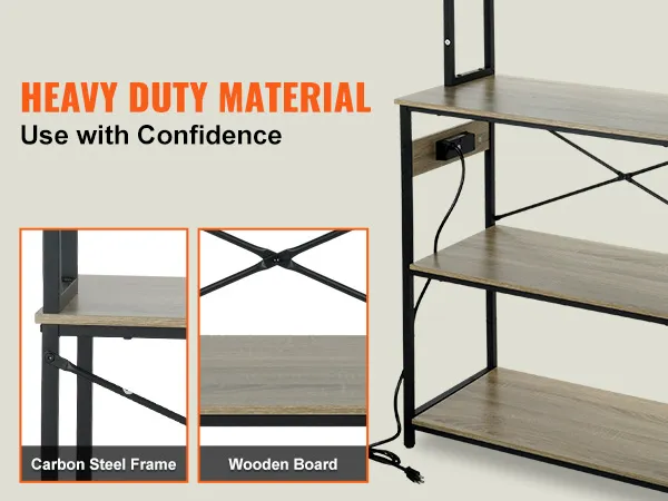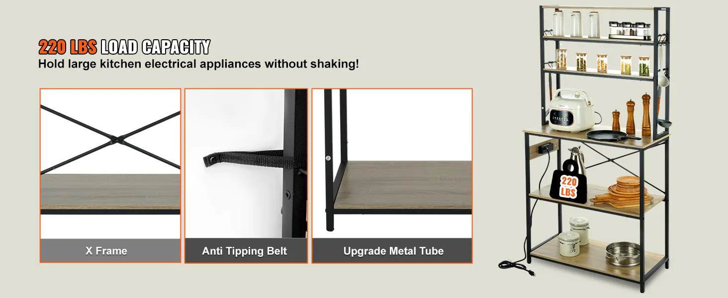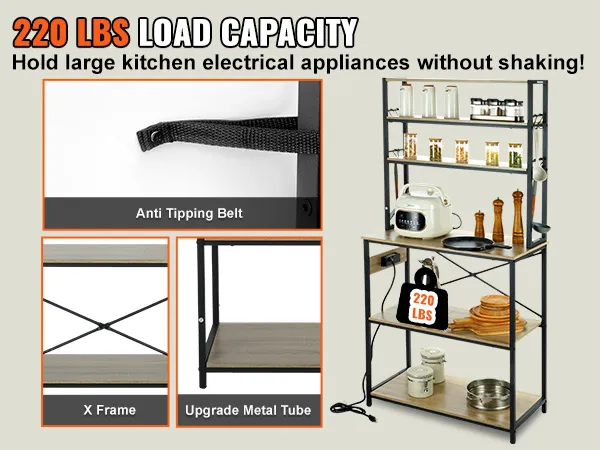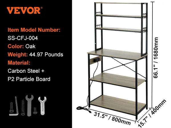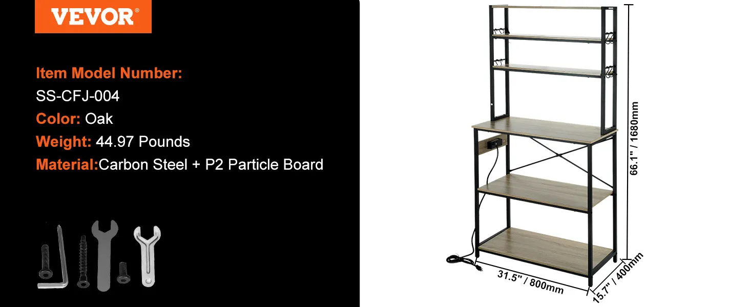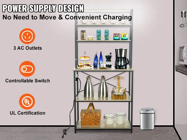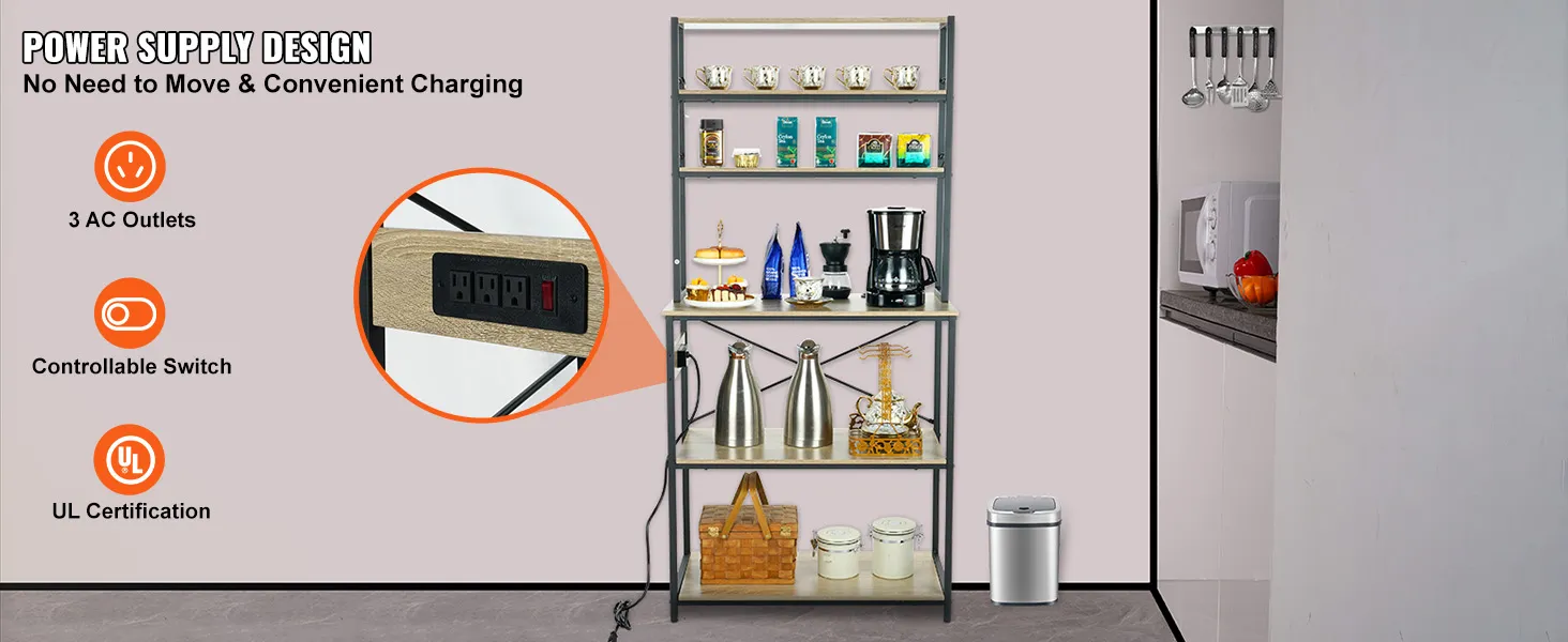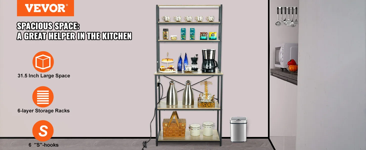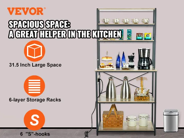 Półki kuchenne VEVOR Półka stojąca 800 x 400 x 1680 mm, półka kuchenna do pieczenia 6-poziomowa półka do kuchenki mikrofalowej, 120,2 kg ładowalne stojaki na przyprawy z 6 haczykami półka kuchenna wbudowane gniazdo wzornictwo przemysłowe