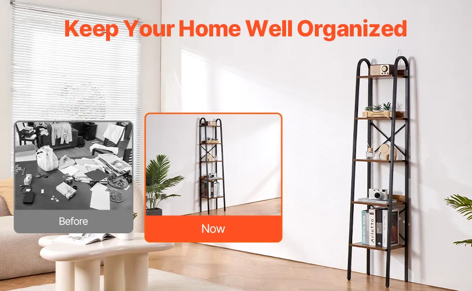 Wszechstronny: Ten rustykalny regał to coś więcej niż tylko półka na książki – można go również wykorzystać jako półkę łazienkową lub stojak na rośliny. Nadaje się do salonów, sypialni, łazienek i innych pomieszczeń, spełniając różnorodne potrzeby związane z przechowywaniem.