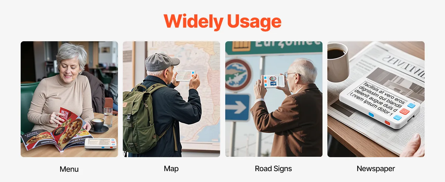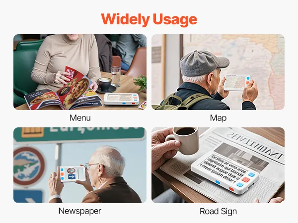 Niezależnie od tego, czy czytasz menu, korzystasz z mapy, przeglądasz gazetę czy rozpoznajesz znaki drogowe, ta przenośna cyfrowa lupa pozwala Ci wyraźniej zobaczyć szczegóły, dzięki czemu Twoje codzienne życie i podróże staną się łatwiejsze i wygodniejsze.