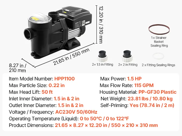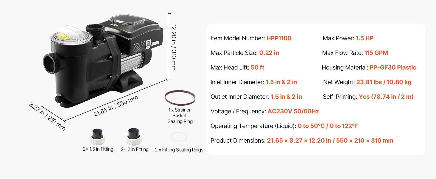 VEVOR Variable Speed Pool Pump, 1100W, AC 220-240V, 26,000 L/H, In/Above Swimming Pool Pump with Filter Basket, Powerful Self Priming, Programmable Timer, for Inground and Above Ground Swimming Pool VEVOR Variable Speed Pool Pump, 1100W, AC 220-240V, 26,000 L/H, In/Above Swimming Pool Pump with Filter Basket, Powerful Self Priming, Programmable Timer, for Inground and Above Ground Swimming Pool
