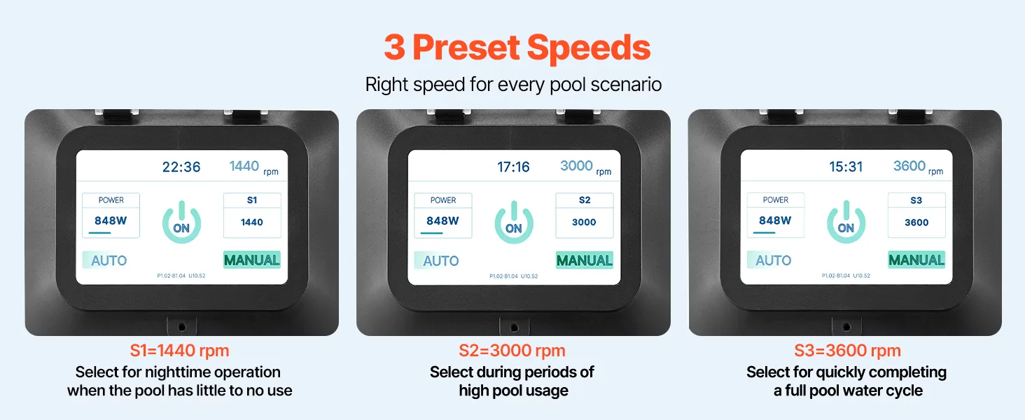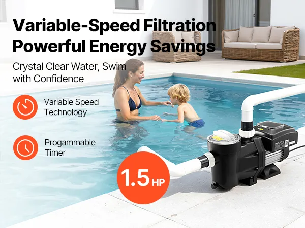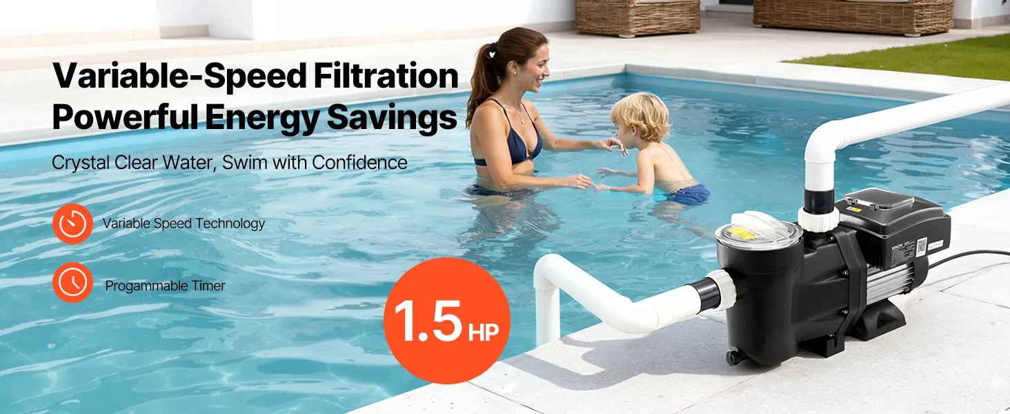 • More Energy-Efficient: This variable speed pool pump adjusts speed based on your pool size and usage frequency, delivering significant energy savings compared to traditional single-speed pumps