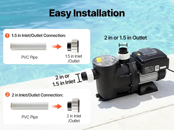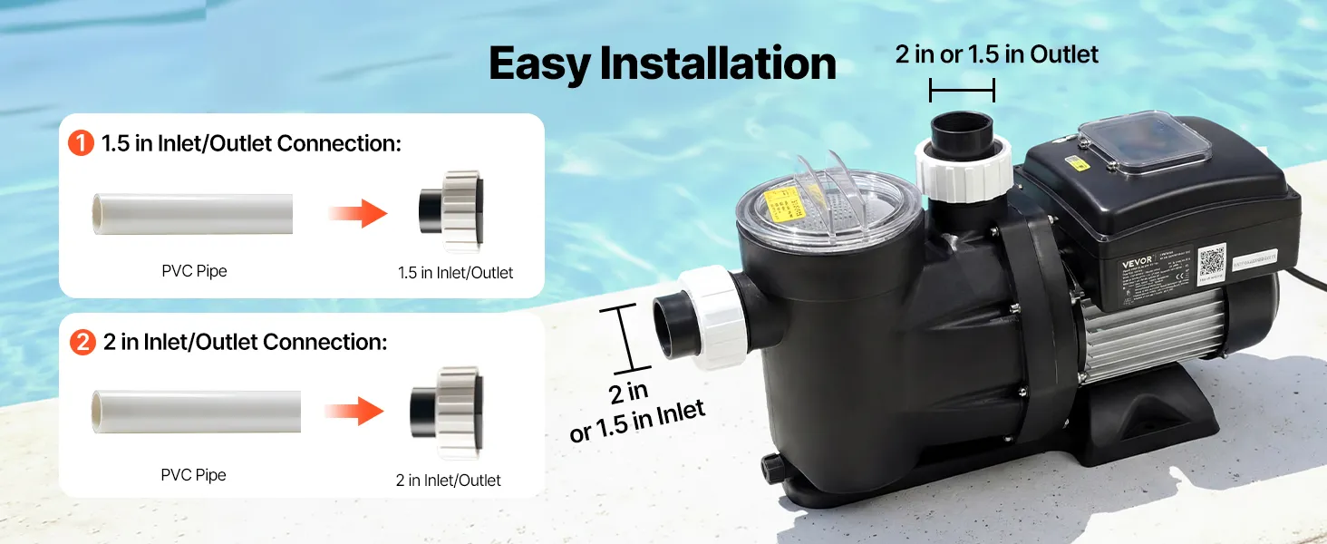 • Installation Made Easy: This variable speed pool pump supports both PVC pipes and flexible PVC hose. With simple, step-by-step connections, it makes setup fast and beginner-friendly