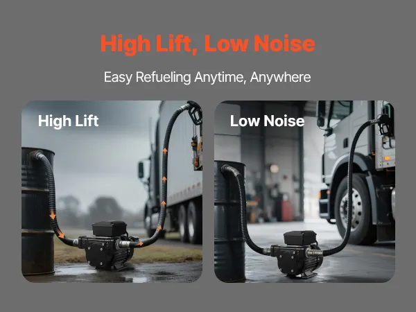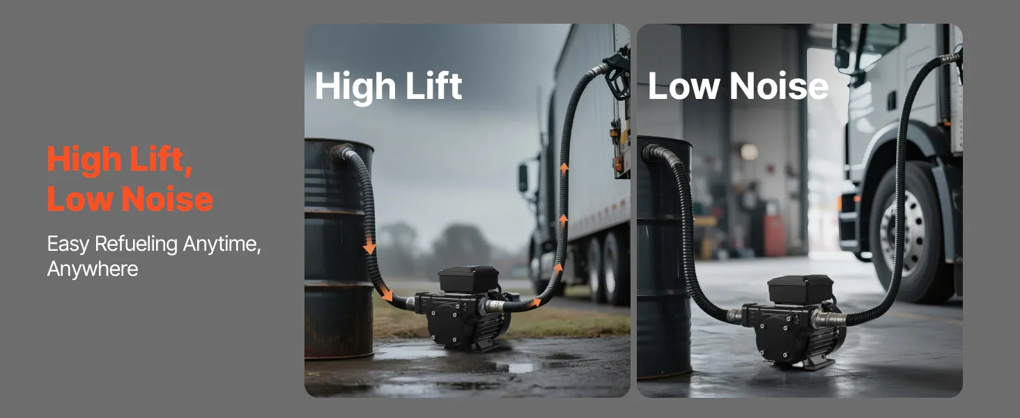 Dzięki imponującej maksymalnej wysokości podnoszenia wynoszącej 13,7 m (45 stóp) ta pompa do przesyłu paliwa diesla idealnie nadaje się do pracy w nocy lub w miejscach, w których hałas jest nieodpowiedni, gdyż umożliwia wydajne dostarczanie paliwa bez przerywania pracy.