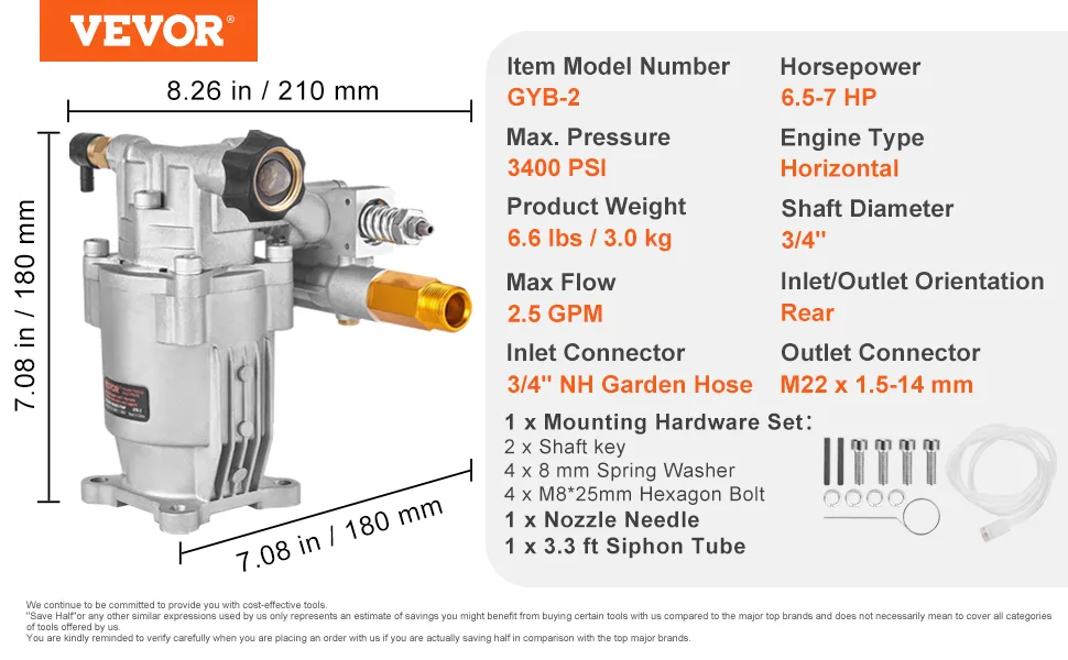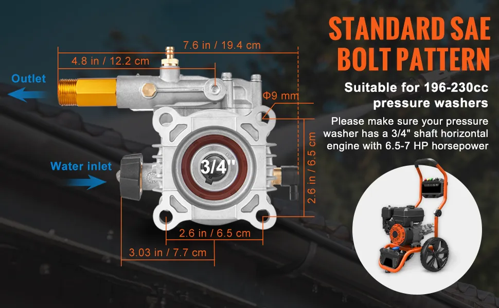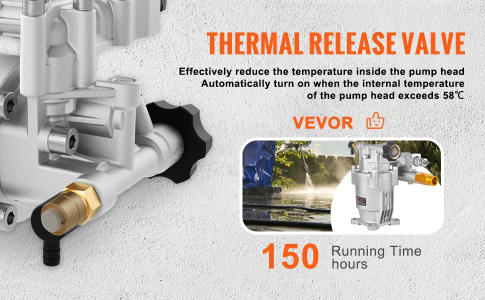 Pompa myjki ciśnieniowej VEVOR zapewnia imponujące 3400 PSI. Zapewnia to wysoką wydajność czyszczenia. Silne ciśnienie może z łatwością rozbić brud i zanieczyszczenia. Pompa myjki ciśnieniowej 3400 PSI jest idealna zarówno do użytku domowego, jak i komercyjnego. Dzięki tej pompie uzyskasz również solidną wydajność. Możesz szybko wyczyścić duże powierzchnie. Jest kompatybilna z różnymi silnikami, takimi jak Honda i RYOBI, więc ta pompa sprawia, że zadania mycia ciśnieniowego są szybkie i skuteczne. Ze względu na wysokie ciśnienie PSi jest niezwykle przydatna do dokładnych prac czyszczących. Zaufaj tej pompie, aby uzyskać niezawodną i wydajną obsługę.