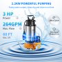 VEVOR Pompa do brudnej wody z pływakiem o zmiennym przepływie, pompa zanurzeniowa, 2200 W, pompa ogrodowa, wydajność 60000 l/h, maksymalny skok 18 m, pompa wodna IPX8, idealna do pompowania wody