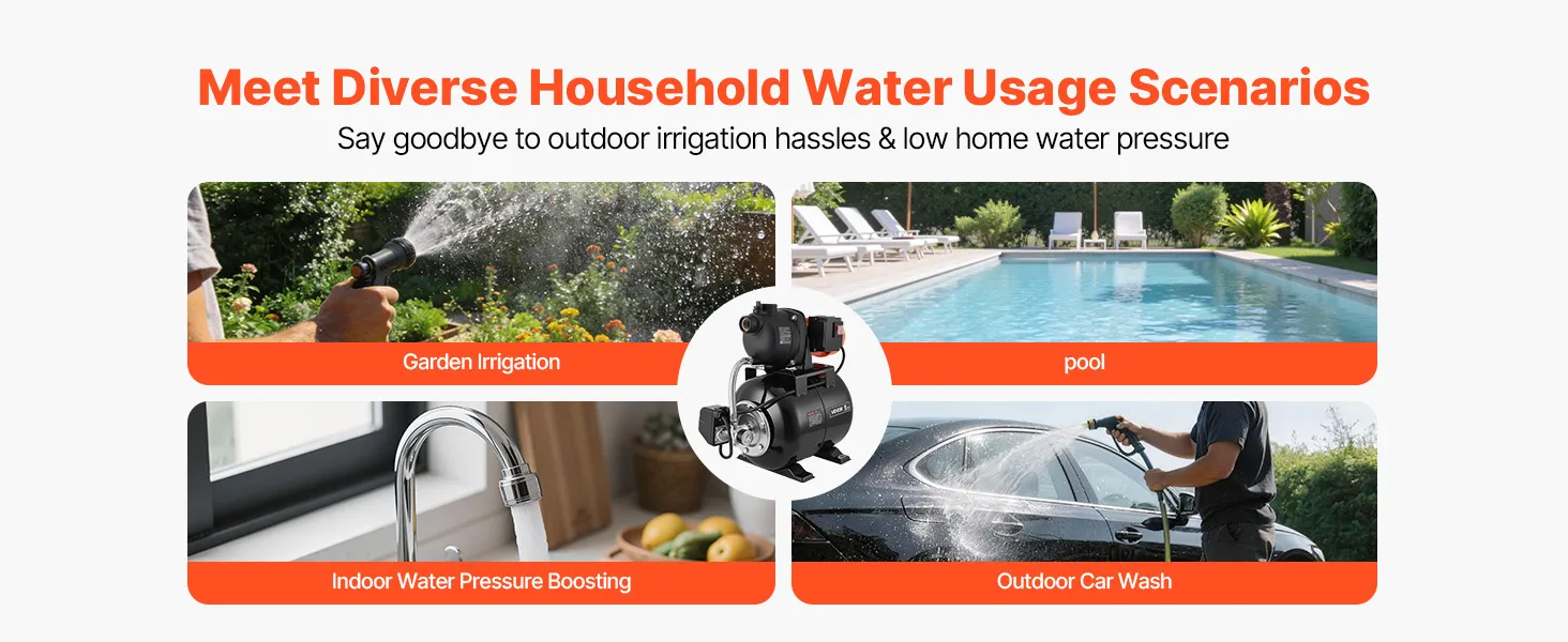 Od nawadniania ogrodu po zastosowania rolnicze, ten domowy system zaopatrzenia w wodę oferuje stabilną wydajność i łatwą obsługę. Niskie ciśnienie wody i skomplikowana instalacja należą już do przeszłości – zapewniając niezawodne zaopatrzenie w wodę do codziennego użytku.