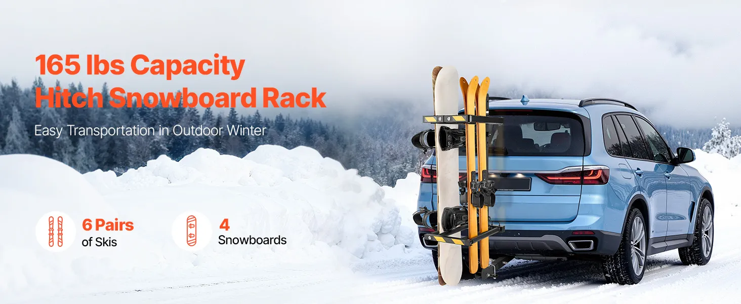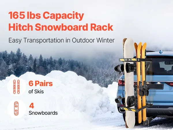 Duża pojemność: Ten uchwyt na snowboard montowany na haku pomieści do sześciu par nart lub cztery duże deski snowboardowe o maksymalnej ładowności 75 kg (165 funtów). Nadaje się również do deskorolek i innego sprzętu outdoorowego, oferując wszechstronne możliwości przechowywania i transportu.