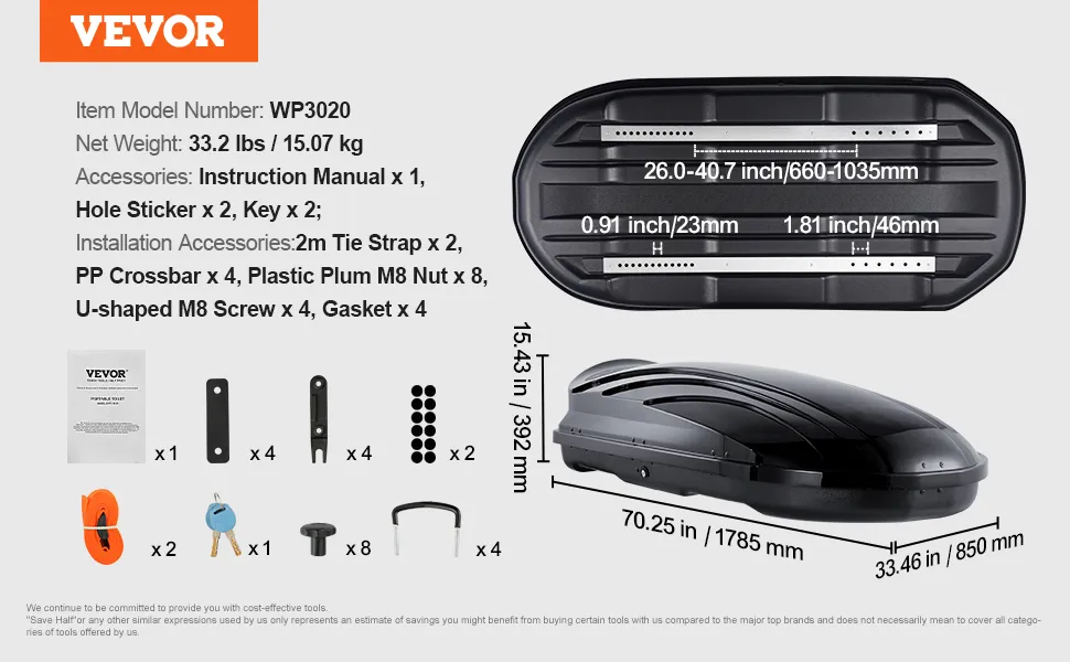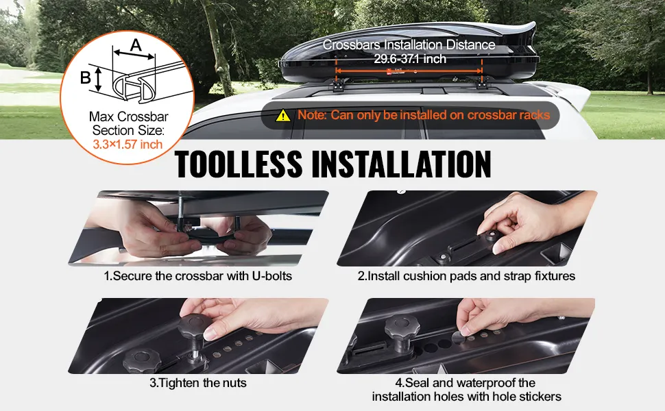 Kompatybilny z różnymi poprzeczkami: Pasuje do belek poprzecznych o rozstawie od 29,6 do 37,1 cala (752-943 mm). Zawiera wszystkie narzędzia montażowe, nie wymaga wiercenia. Z metalowymi prętami u dołu dla dodatkowej stabilności.