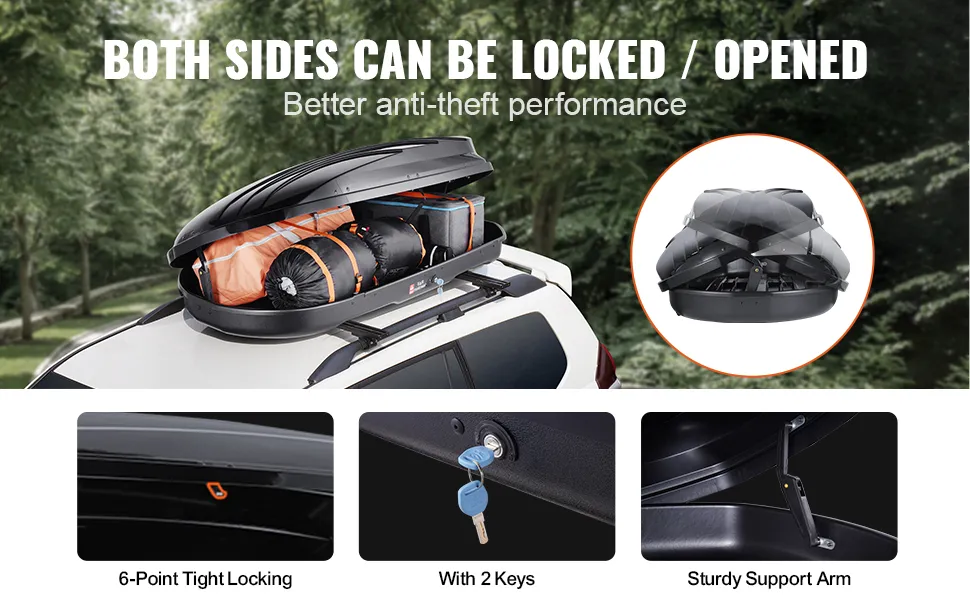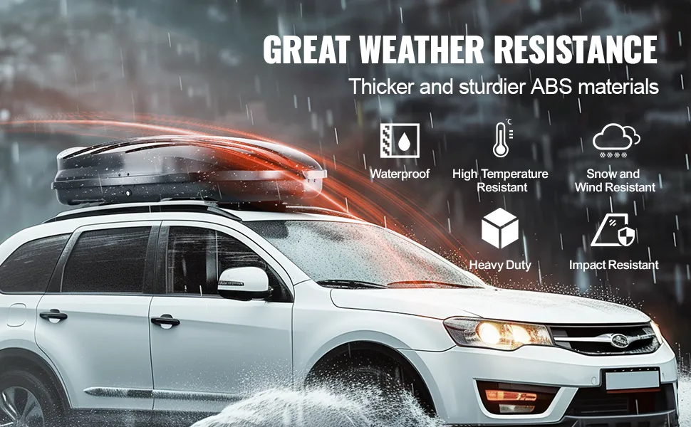 Nasz box dachowy wykonany jest głównie z grubego materiału ABS, trwałego i odpornego na stłuczenia, skutecznie wodoodpornego i odpornego na ciepło, chroniąc Twoje cenne rzeczy przed czynnikami atmosferycznymi.