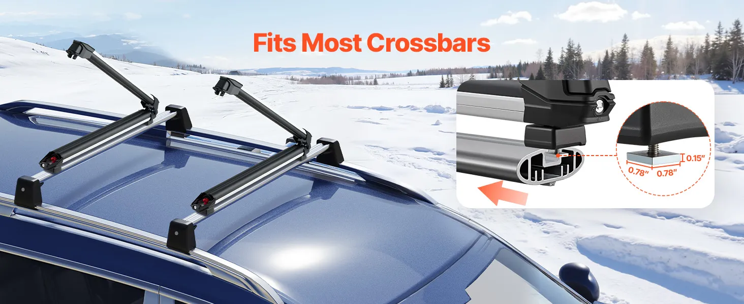 Łatwy montaż: Nasz uniwersalny bagażnik dachowy na narty jest wyposażony w mocowanie w kształcie litery T, kompatybilne z większością poprzeczek z rowkami. Nie wymaga narzędzi – wystarczy wsunąć śruby w rowki w kształcie litery T w poprzeczkach i dokręcić nakrętki, aby bezpiecznie przymocować bagażnik do dachu.