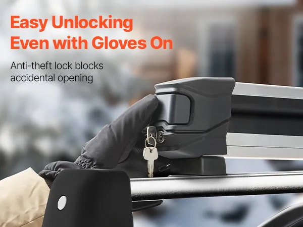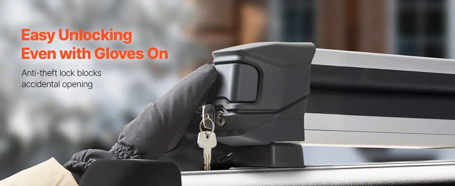 Nasz bagażnik na narty jest wyposażony w blokadę antykradzieżową, którą można łatwo zablokować i odblokować, nawet w rękawiczkach. Dzięki tej przemyślanej konstrukcji możesz szybko i sprawnie pracować podczas wycieczek na świeżym powietrzu bez konieczności zdejmowania rękawiczek.