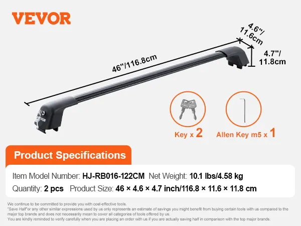 Uniwersalne belki poprzeczne do bagażnika dachowego: Nasze poprzeczki do bagażnika dachowego o długości 116,8-122,8 cm nadają się do większości pojazdów z zamkniętym dachem i rowkowanymi relingami bocznymi (bez szczeliny), przy wewnętrznej szerokości relingów bocznych 40 . 8–43,1 cala (103,5–109,5 cm). Nie wymaga wiercenia – elastyczne nóżki montażowe można dopasować tak, aby idealnie pasowały do dachu pojazdu.