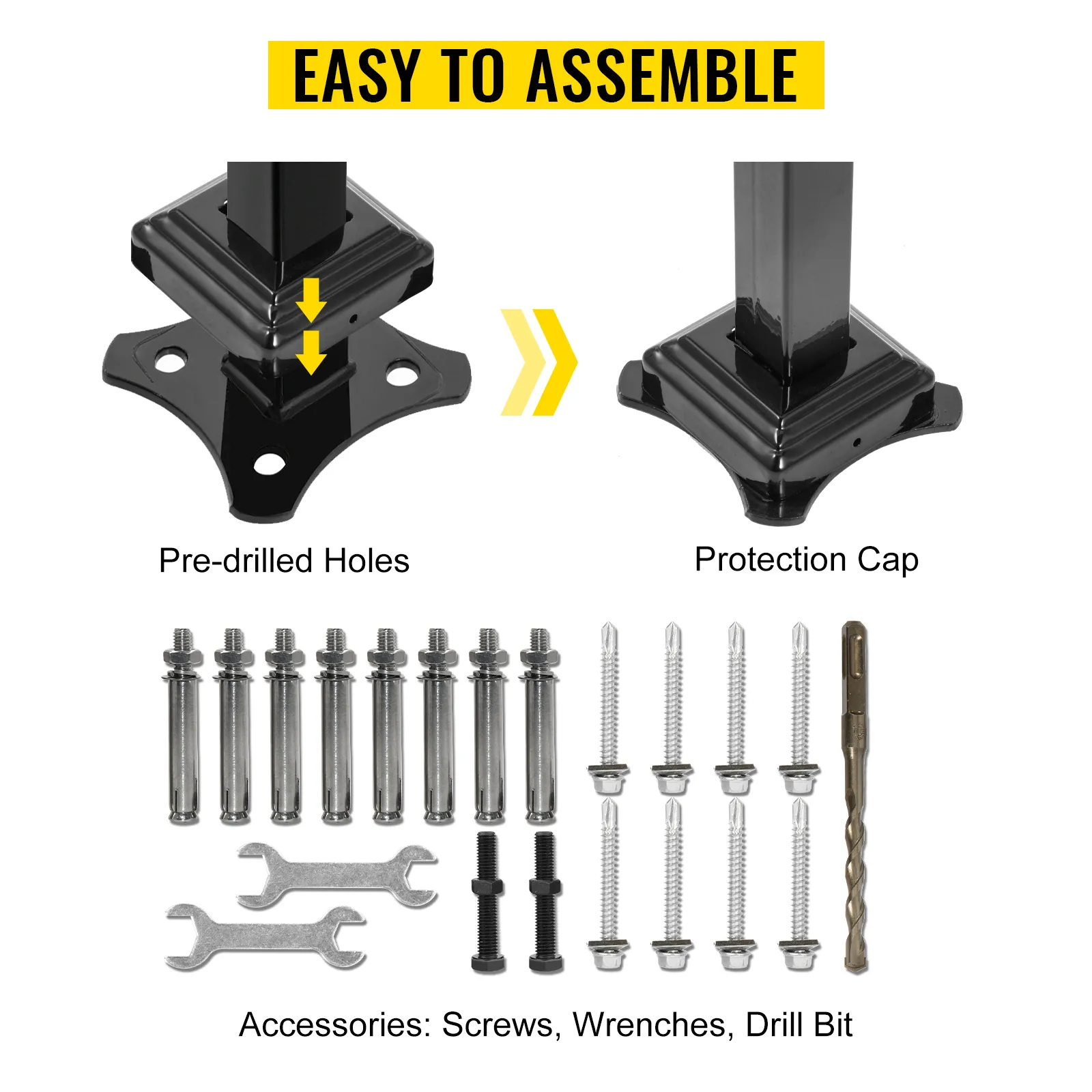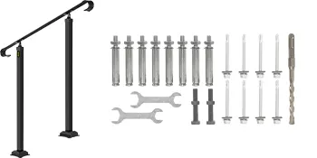 Zestaw poręczy zawiera wszystko, czego potrzebujesz do przymocowania poręczy i słupków do schodów. Jest łatwy w montażu i zajmuje zaledwie kilka minut.