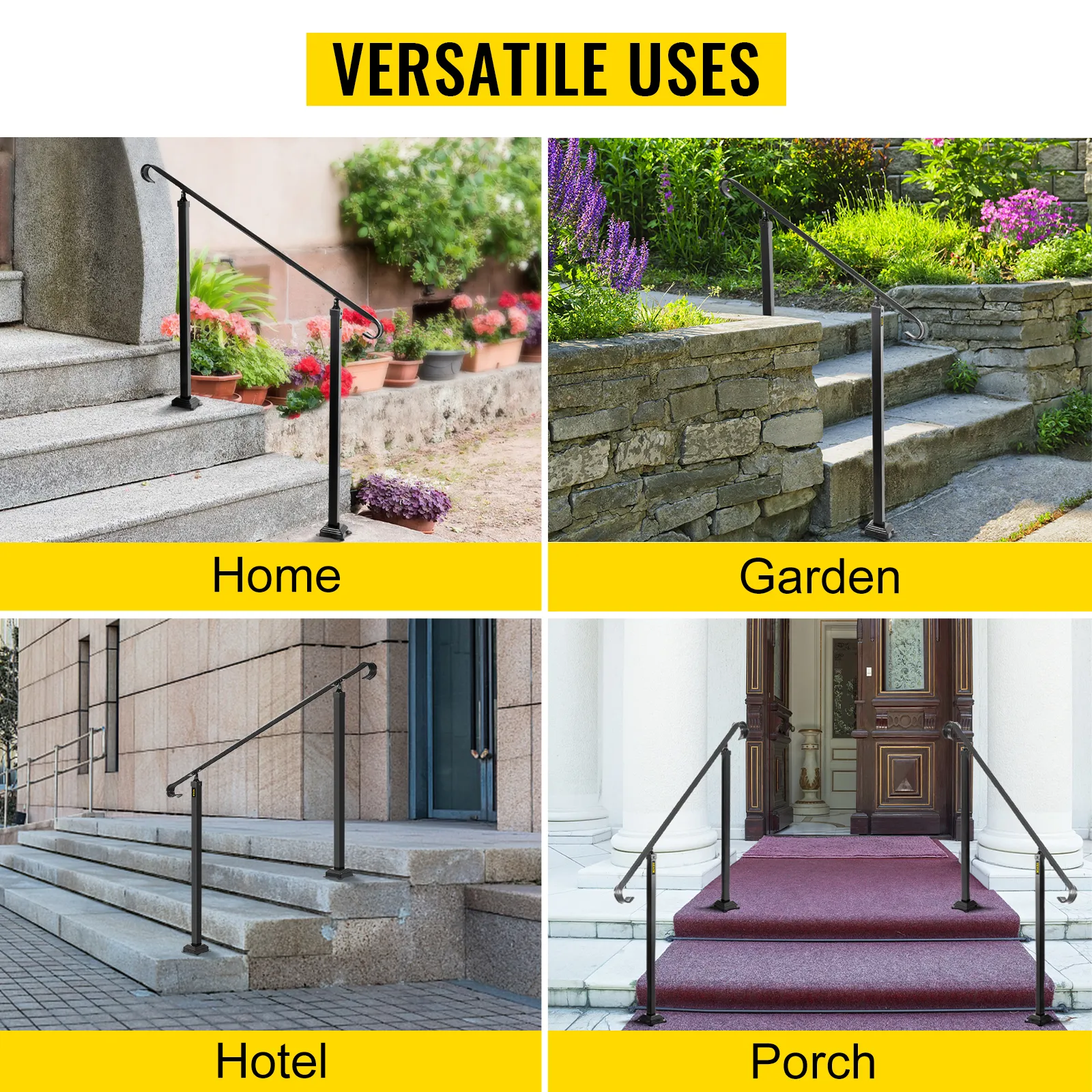 Ta żelazna balustrada będzie świetnym pomocnikiem dla członków rodziny podczas wchodzenia i schodzenia po schodach. Pasuje do 1–3 stopni, spełniając różne potrzeby.