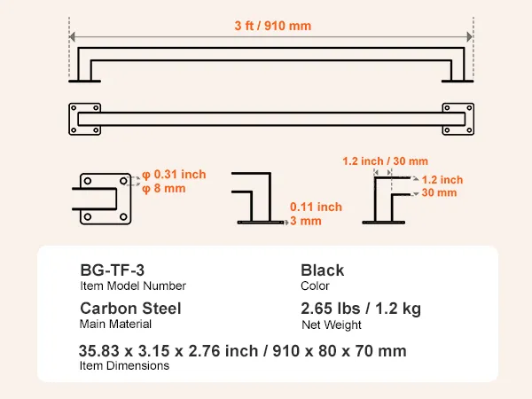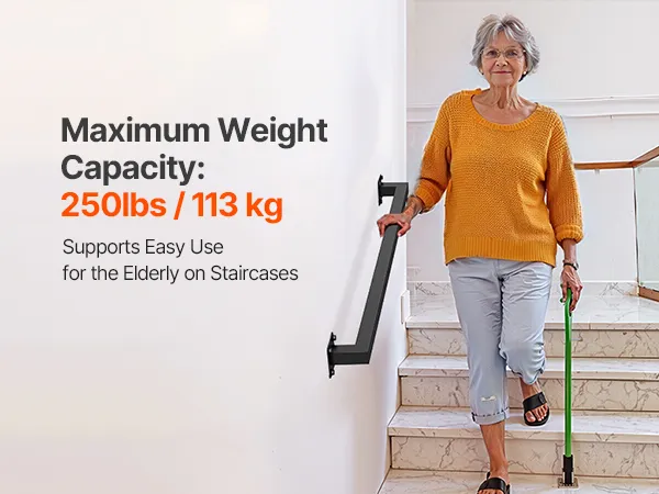 Nośność: Ta mocowana do ściany poręcz schodowa zapewnia solidne wsparcie i wytrzymuje obciążenie do 113,4 kg. Solidna płyta podstawy i trwałe materiały gwarantują stabilność i sprawiają, że stojak idealnie nadaje się do podtrzymywania różnych przedmiotów.