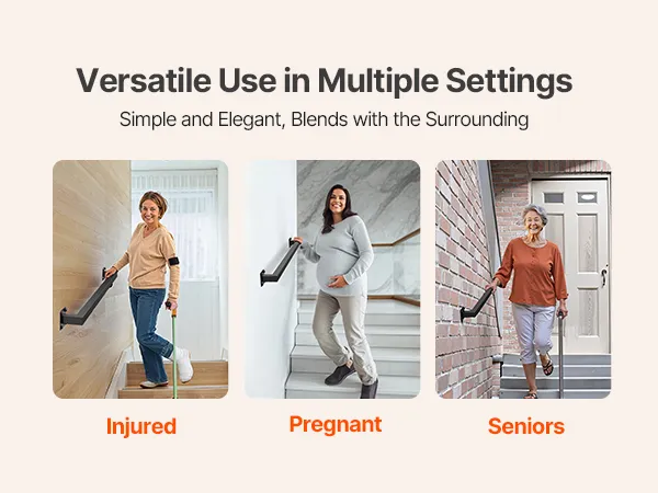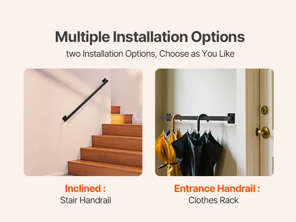 Nasza poręcz ścienna zapewnia trwałe i stabilne podparcie, gwarantując bezpieczne korzystanie ze schodów. Ponadto można go zamontować w kuchni, szafie i salonie, gdzie będzie praktycznym uchwytem na naczynia, ubrania i zasłony.