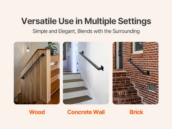 Kompatybilny z różnymi typami ścian: Nasz uchwyt ścienny do poręczy schodowych nadaje się do ścian drewnianych, ceglanych i betonowych. Zalecamy montaż poręczy na wysokości około 900 mm (35 cali) nad podłogą.