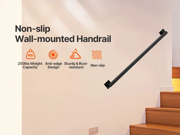 Trwała konstrukcja ze stali węglowej: mocowana do ściany poręcz schodowa wykonana jest z wysokiej jakości, wytrzymałej stali węglowej i jest antypoślizgowa. Zapewnia bezpieczne i komfortowe wsparcie dla wszystkich członków rodziny.