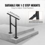 Poręcz schodowa zewnętrzna VEVOR jest regulowana. Pasuje do stopni o wysokości od 0 do 2 cali. Kąt można również regulować w zakresie od 1 do 50 stopni. Ta elastyczność sprawia, że nadaje się do różnych konfiguracji schodów. Niezależnie od tego, czy Twoje stopnie są wysokie, czy niskie, poręcz może się dostosować. Ponadto dostosowuje się do różnych kątów i zapewnia idealne dopasowanie. Ta funkcja jest pomocna w przypadku stopni o nieregularnych kształtach. Nasza regulowana konstrukcja zapewnia, że spełnia Twoje konkretne potrzeby. Poręcz można stosować w pomieszczeniach mieszkalnych lub komercyjnych. Regulowana natura poręczy zapewnia różne opcje dopasowania. Dzięki temu nadają się do wielu zastosowań. Elastyczność Możemy dostosować długość naszej poręczy zgodnie z wymogami bezpieczeństwa.