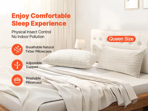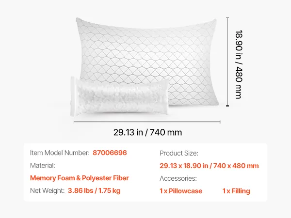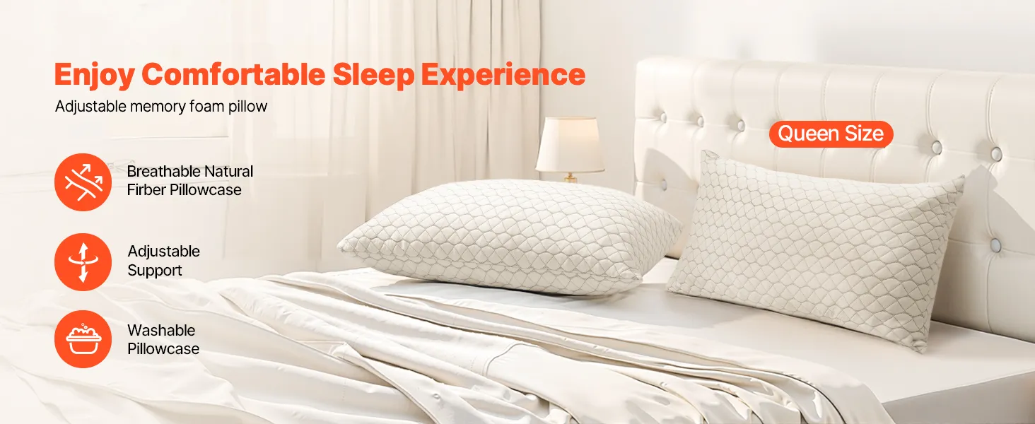 Poduszka z pianki memory VEVOR w rozmiarze queen, zapewniająca dobre podparcie i regulowana, z poszewką z naturalnego włókna, przeznaczona dla osób śpiących na plecach, brzuchu i boku